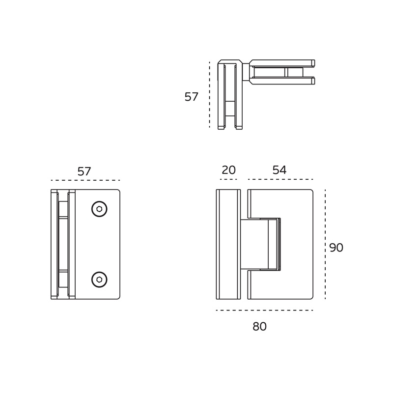 Bisagra cristal a cristal 90º con freno y fijo JNFIN5308DP