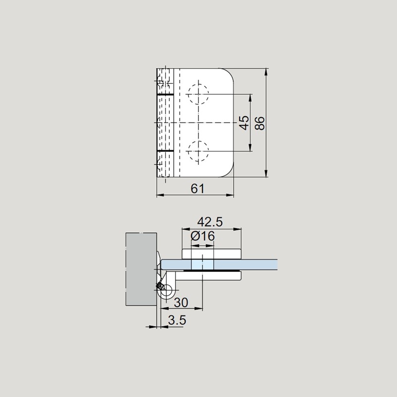 Acabado en: Anodizado Plata Preguntar para precio. Puede encontrar el catálogo de bisagras aquí.