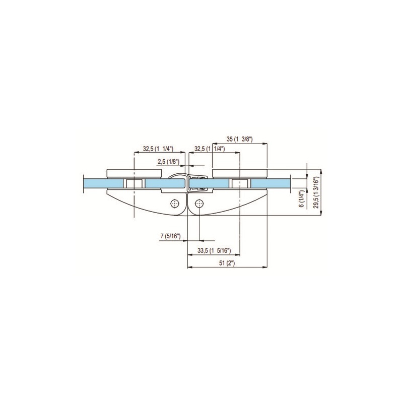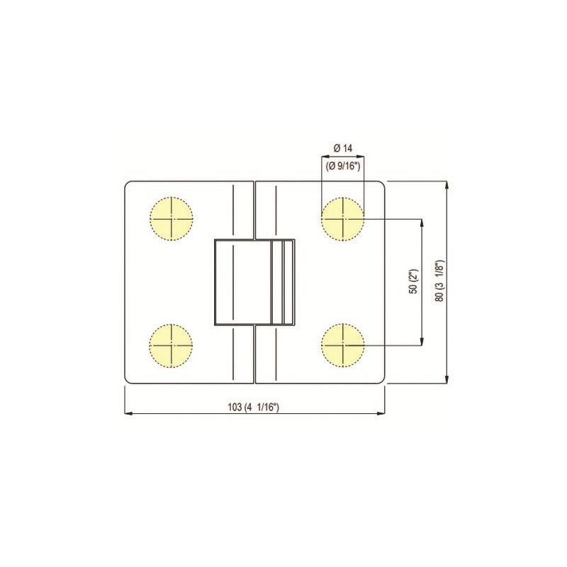 Bisagra con fijación central (vidrio-vidrio) para puertas de batiente para espacios húmedos de vidrio.