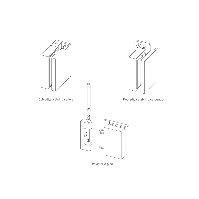 BISAGRA REVERSIBLE VIDRIO-PARED ACABADO EN ACERO INOXIDABLE SATINADO