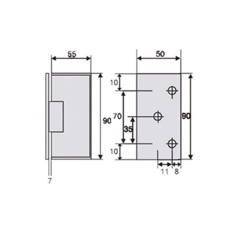 BISAGRA SIMPLE VIDRIO-PARED 90º ESQUINERA CANTOS RECTOS REF.IB