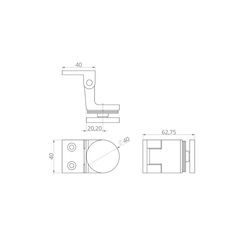 BISAGRA VIDRIO-PARED 40ØMM V.6-8MM SIN RETENCION CROMO BRILLO