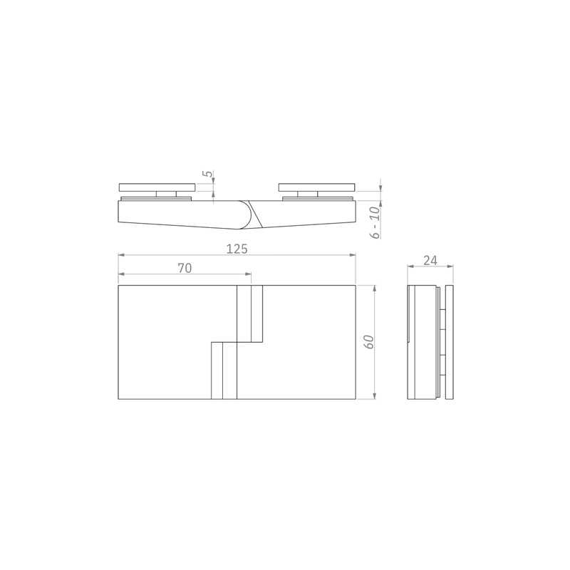 BISAGRA VIDRIO-VIDRIO 180º ELEVABLE DERECHA V6-10MM CROMO BRILLO