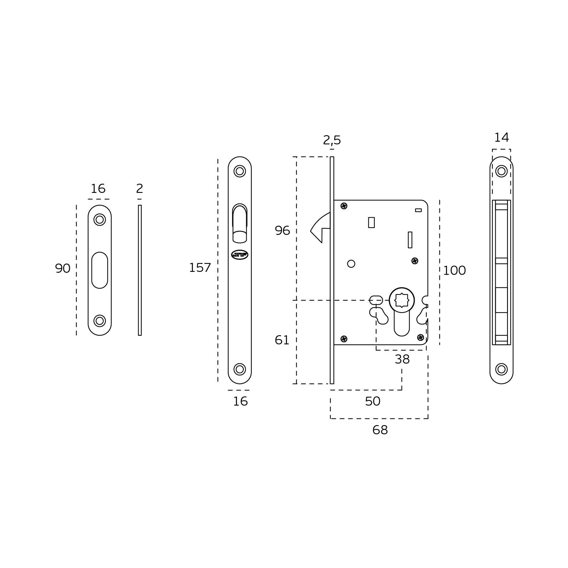 Cerradura de embutir para puertas correderas.