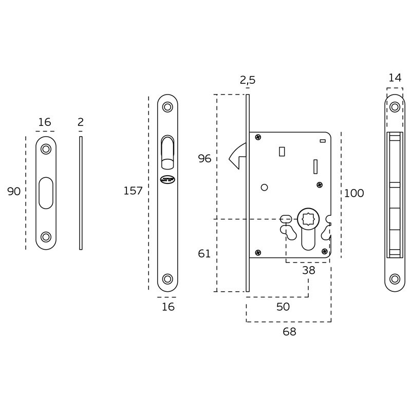 KIT CERRADURA DE EMBUTIR PARA PUERTAS CORREDERAS JNFIN20937.NS – NIQUEL SATINADO