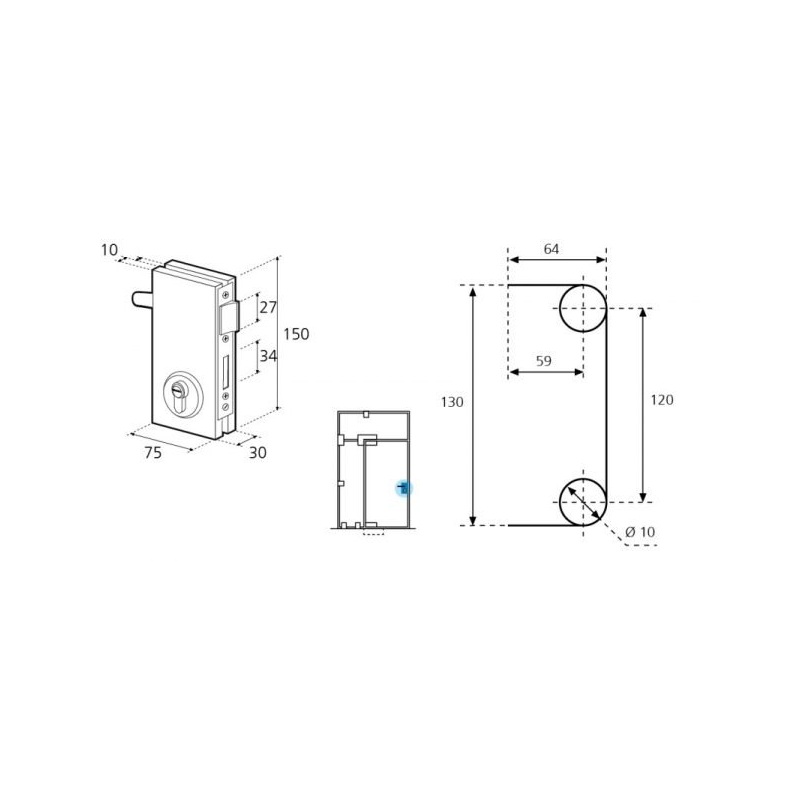 Familia: Cerraduras y cerraderos para puerta de cristal con muesca serie 04.