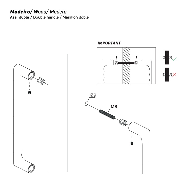 Juego tirador SQUARE 400mm vidrio JNF07153D