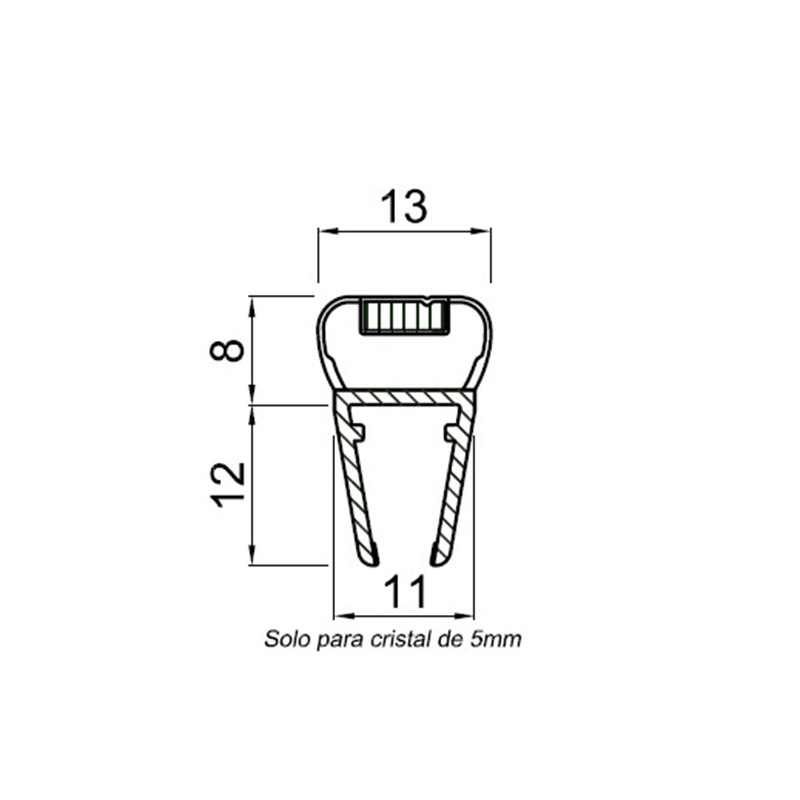 JUNTA SUPGX1280 ESTANQUEIDAD MAGENTICA CON IMAN PALNO PARA VIDRIO DE 5MM DE GROSOR (PRECIO X METRO)