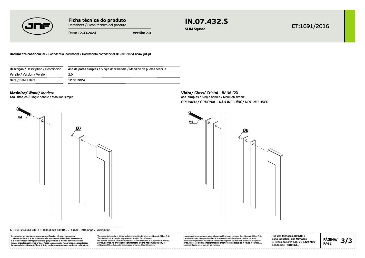 MEDIO TIRADOR DE PUERTA SLIM (300MM) JNFIN07432.S INOX. SATINADO
