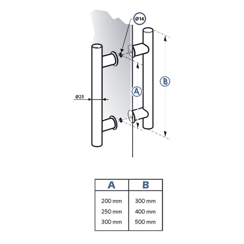MEDIO TIRADOR EN H TUBO 25ØMM INOX.
