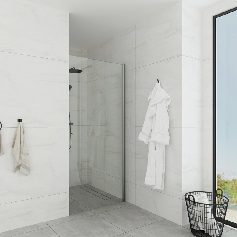 Con una longitud de perfil de 2000 mm, el herraje es ideal para diferentes soluciones de ducha. El herraje está disponible en varios acabados para integrarse armoniosamente en diferentes diseños de baño.