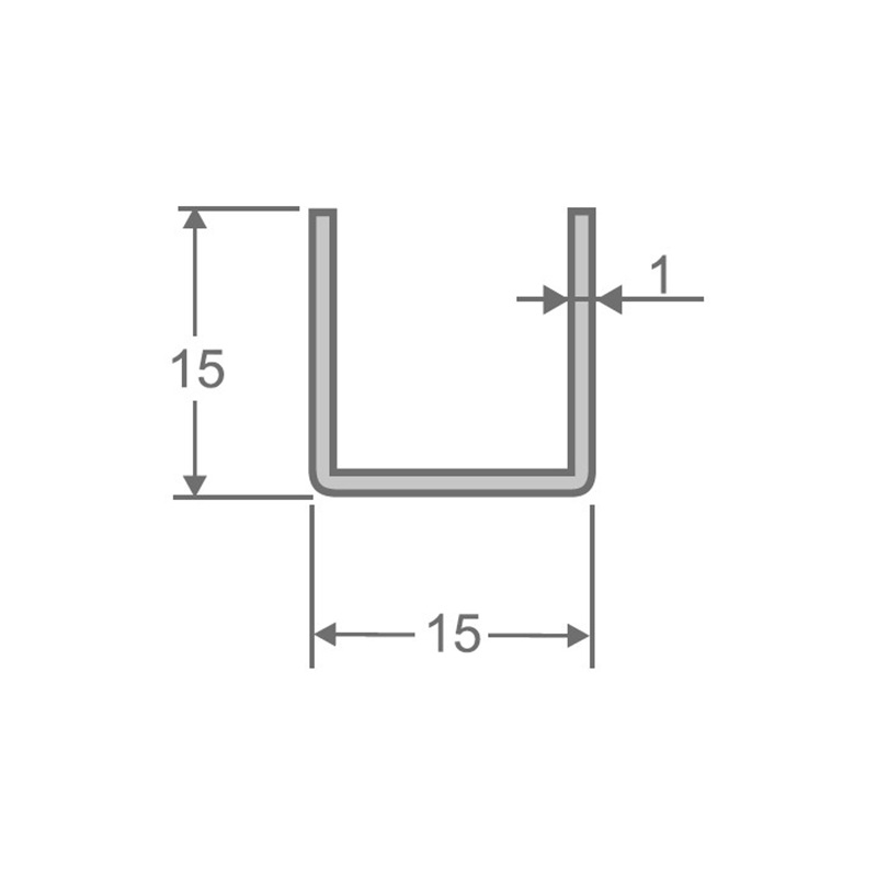 PERFIL TR031C U DE MEDIDAS 15X15X15MM PARA VIDRIO DE 10MM DE GROSOR
