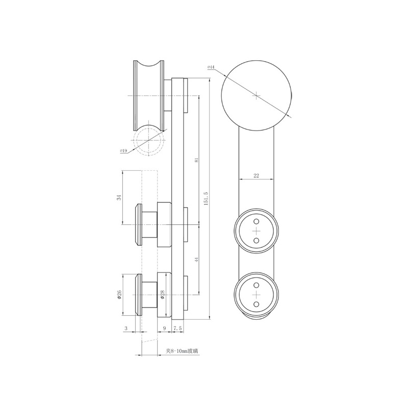 RODAMIENTO SUIS9100A-1C PARA BARRA DE Ø19MM PARA VIDRIO DE 8-10MM HASTA 100KG