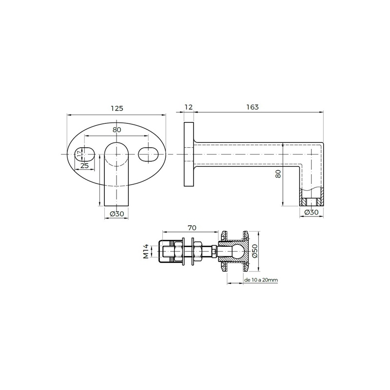SOPORTE ING001 DE MURO A VIDRIO LARGO