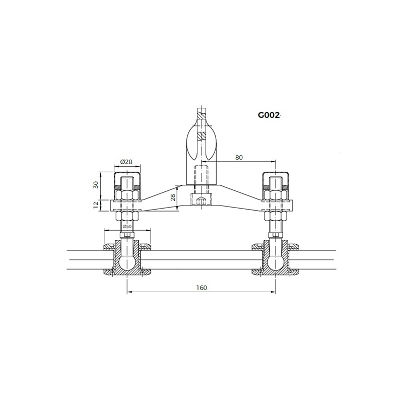 SOPORTE ING002-202 DE TENSOR Ø20MM A GRAMPÓN X160 VIDRIO DOBLE
